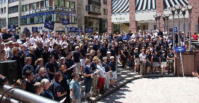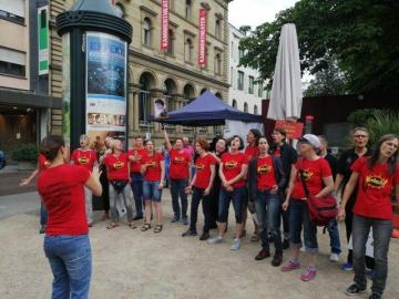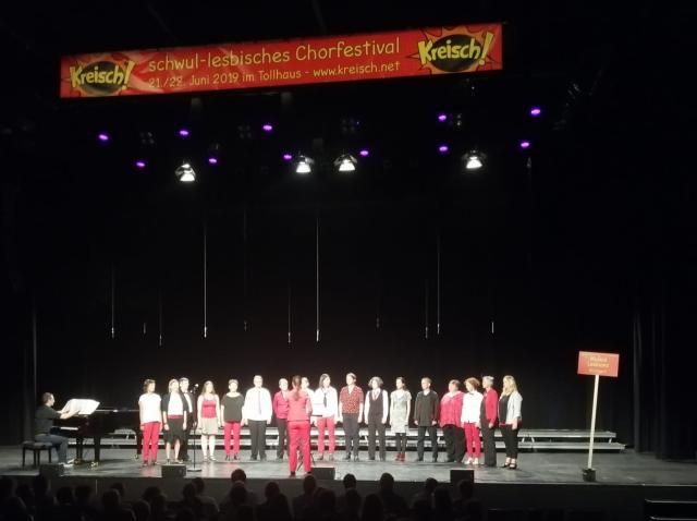 Bei Kaiserwetter haben wir in Frankfurt zusammen mit 13 anderen lesbischen, schwulen und gemischten Chören das Süddeutsche Chörefesival Schreiline gefeiert. Hier seht Ihr einige Bildkostproben vom Straßensingen und unserem Auftritt.